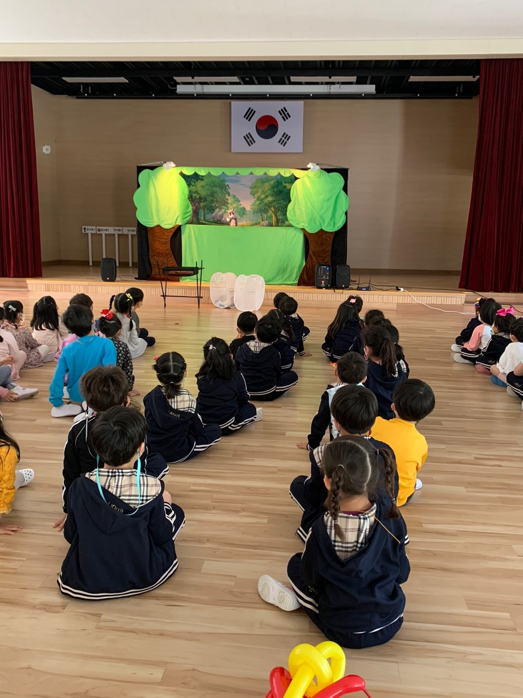5월3일 어린이날을 맞이하여 만 3,4,5세 친구들이 다모임뜰(본원 강당)에서 풍선공연과 인형극을 관람하였습니다.