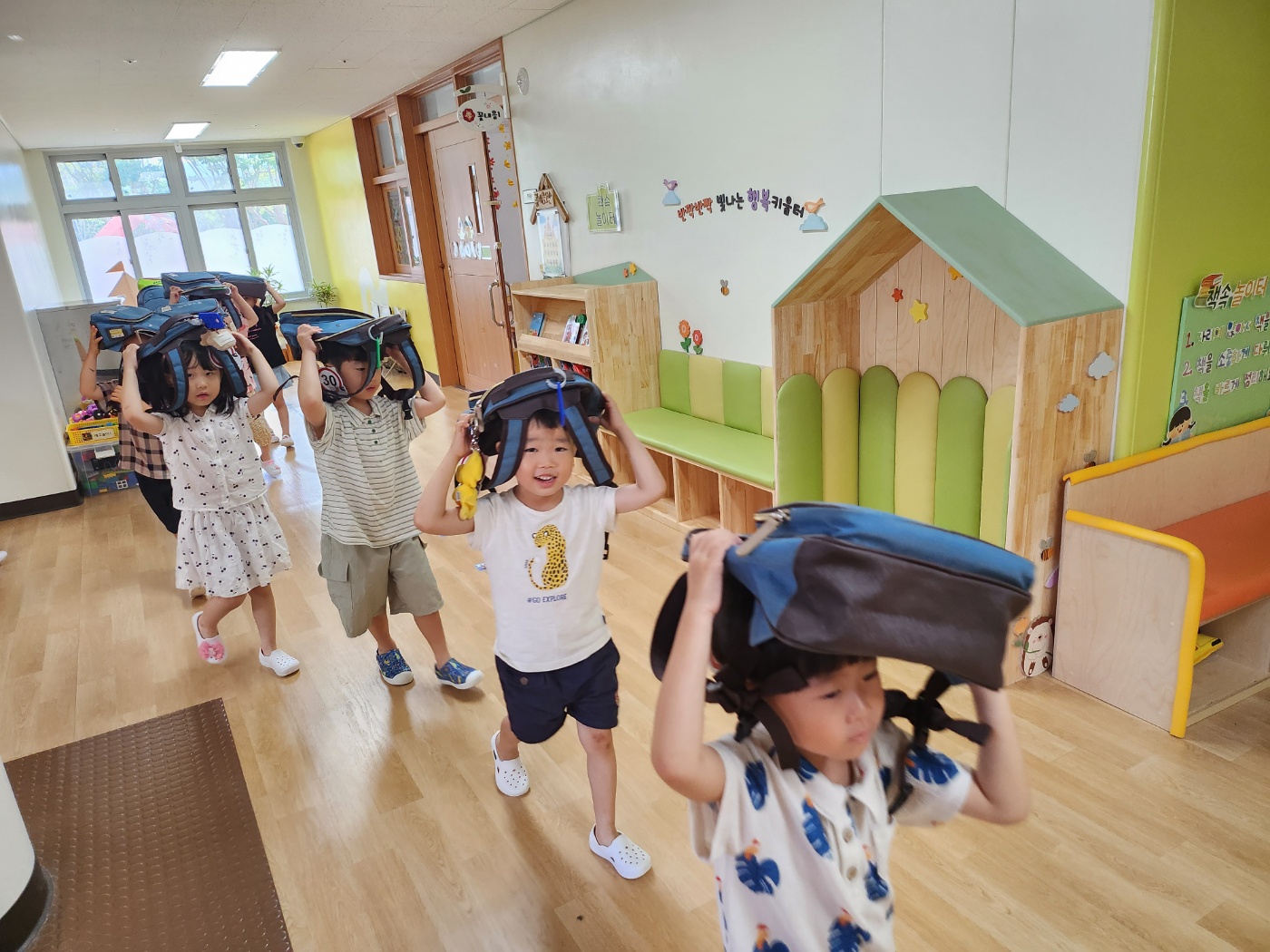 물금유치원 7월 지진대피훈련을 오전 10시에 실시하였습니다.