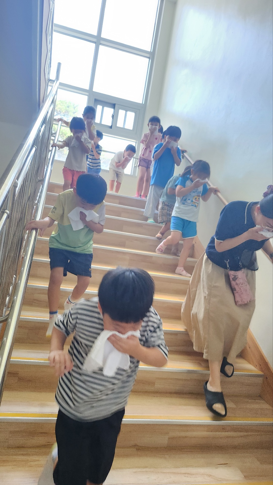 2025년 9월 16일 화요일 10시부터 물금유치원 전체 유아 및 교직원은 화재대피훈련을 실시하였습니다. 모두가 안전하고 신속하게 자연학습장으로 대피하였습니다.
